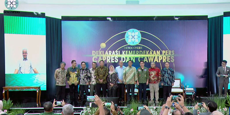 KINERJAEKSELEN.co, Jakarta – Dewan Pers dan tiga pasangan capres-cawapres menggelar ‘Deklarasi Kemerdekaan Pers’ serta penandatanganan Komitmen Kemerdekaan Pers di Gedung Dewan Pers, Jakarta Pusat, Sabtu malam [10/2/2024]