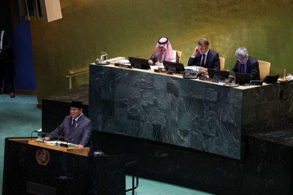 KINERJAEKSELEN.co, Jakarta – Presiden Republik Indonesia Prabowo Subianto menyampaikan pidato Konferensi Internasional Tingkat Tinggi untuk Penyelesaian Damai atas Masalah Palestina dan Implementasi Solusi Dua Negara yang digelar di Gedung Majelis Umum Perserikatan Bangsa-Bangsa (PBB), New York, Amerika Serikat, pada Senin (22/09/2025). Mengawali pidatonya, Presiden Prabowo menyampaikan penghargaan kepada Pemerintah Prancis dan Kerajaan Arab Saudi atas kepemimpinan mereka dalam menyelenggarakan pertemuan penting ini.