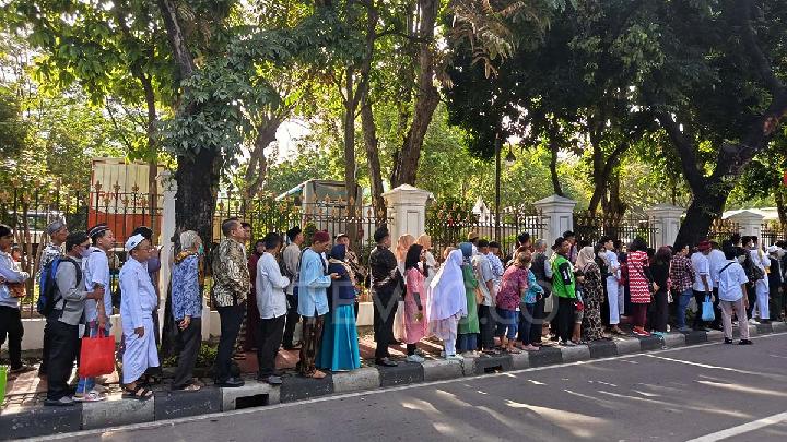 Demi bertemu Presiden Prabowo, antrean masyarakat sudah mengular sejak pagi, bahkan ada yang datang sejak subuh, bahkan beberapa sumber menyebut warga mulai berdatangan sejak pukul 05.00 WIB atau lebih awal.