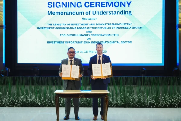 KINERJAEKSELEN.co, Jakarta – Kementerian Investasi dan Hilirisasi/Badan Koordinasi Penanaman Modal (BKPM) bersama dengan Tools for Humanity Corporation (TFH) hari ini menandatangani Nota Kesepahaman (MoU) untuk menjajaki peluang investasi di sektor digital Indonesia. Kerja sama ini berfokus pada fasilitasi investasi TFH dalam pengembangan dan produksi Orb, sebuah perangkat kamera khusus yang digunakan dalam sistem identitas digital berbasis kecerdasan buatan, World ID.