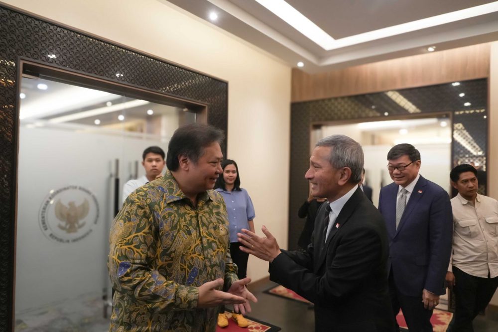 Menteri Luar Negeri Singapura Vivian Balakrishnan bertemu dengan Menteri Koordinator Bidang Perekonomian Airlangga Hartarto di Kantor Kementerian Koordinator Bidang Perekonomian, Selasa (23/04). Ft. Kementerian Perekonomian