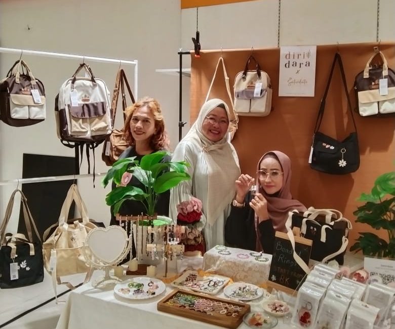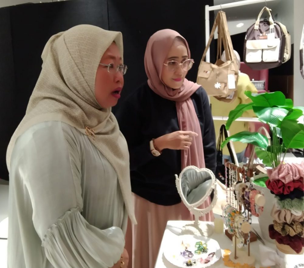 CEO Kinerja Group Risdiana Wiryatni [kanan] di salah satu stand Pasarame UMKM 2024