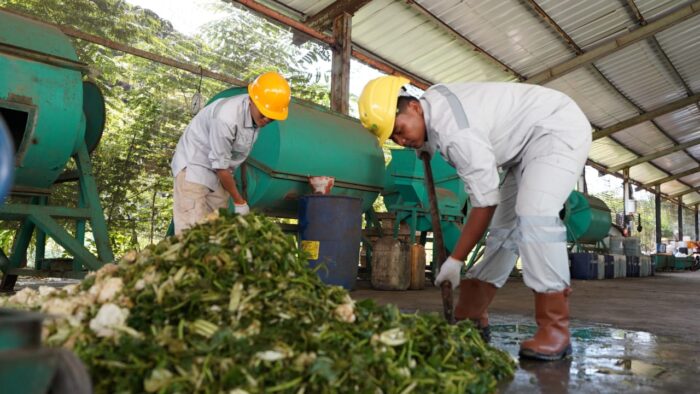 Sampah organik dari sisa makanan diolah dengan melakukan pencacahan terlebih dahulu menjadi beberapa potongan kecil. Kemudian masuk pada tahap pencampuran melalui metode biologis (bioremediasi), dengan memanfaatkan mikroorganisme sebagai aktivator pengurai. Setelah itu dialihkan untuk diolah menjadi kompos dan pakan maggot. “Jadi, pupuk kompos itu akan disuplai ke tenant dalam kawasan IMIP untuk penghijauan di Ruang Terbuka Hijau (RTH). Namun, ada juga beberapa instansi Pemerintah seperti sektor pendidikan dan kesehatan ketika membutuhkan pupuk untuk penghijauan di area sekolah atau perkantoran, maka kami distribusikan juga,” jelas Burhan.