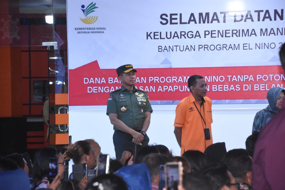 Sementara itu di tempat berbeda, Panglima TNI juga turut mendampingi Presiden Jokowi saat pemberian Bantuan Langsung Tunai (BLT) El Nino di kantor Pos Manado kepada masyarakat.