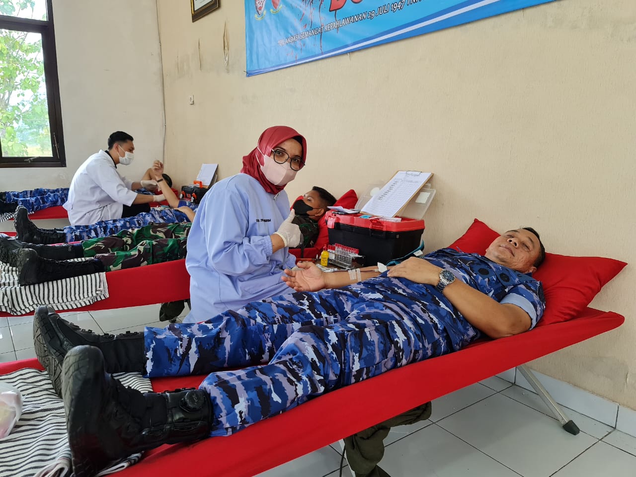“ Donor darah ini disamping untuk membantu penyediaan darah, donor darah juga baik untuk kesehatan. Ayo yang lain ikuti, agar seha,” ajak Marsda TNI Eding Sungkana